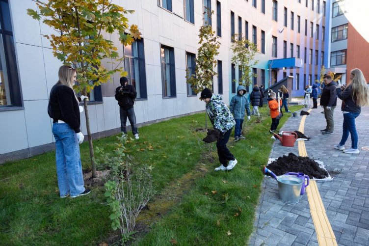 Школа на 1100 мест была построена компанией и передана городу в июле этого года, а уже 1 сентября она приняла первых учеников. Новые деревья станут частью благоустройства школьной территории и дополнят уютную зеленую зону для учащихся и педагогов.